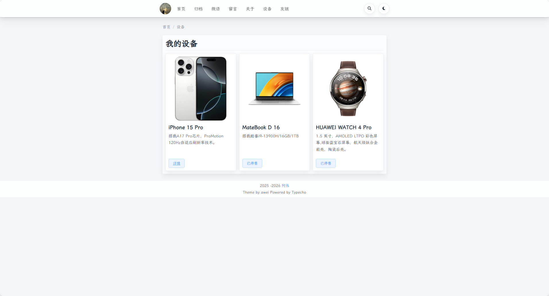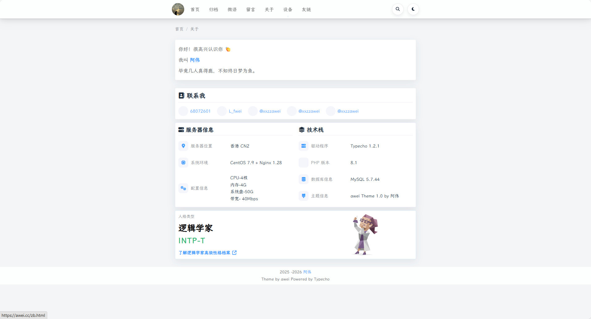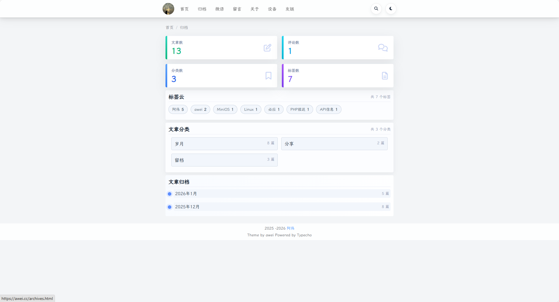 AWei 是一款面向 Typecho 的个人博客主题,围绕“内容展示 + 个人表达 + 站点运营”设计。